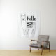 Modern black and white llama sketch with the word "hello" wall tapestry.