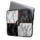 Trendy Black & White Check Marble -Add Your Letter Laptop Sleeve