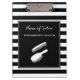 Trendy Black White Stripes Hair and Beauty Salon Clipboard