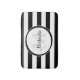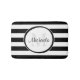 Trendy Black White Stripes With Monogram and Name Bath Mat