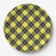Trendy Black Yellow Plaid Pattern Paper Plate