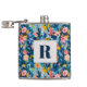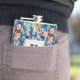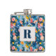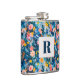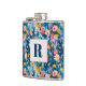 Trendy Blue and Pink Abstract Botanical Monogram Hip Flask