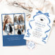 Trendy Blue Bow Ribbon 3 PHOTO Graduation Party Invitation