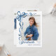 Trendy Blue Bow Ribbon 4 PHOTO Graduation Party Invitation