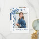 Trendy Blue Bow Ribbon 4 PHOTO Graduation Thank You Card.