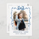 Trendy Blue Bow Ribbon PHOTO Graduation Party Postcard