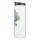 This thermal tumbler is a stunning embodiment of elegance, featuring a sleek and modern design adorned with delicate blue hydrangea blooms.