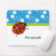 Trendy Blue Floral Ladybug With Name Mouse Pad
