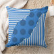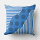Trendy Blue Geometric Layered Stripes & Dots Cushion