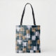 Trendy Blue Gold Brown Black White Plaid Tote Bag
