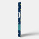 Stylish and fun blue, green and white polka dot pattern on a dark navy blue background with a white custom name template. Add a personal touch to your iphone 13 case by customising the name for yourself or to make it a gift.