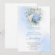 Set the tone for a stylish and unforgettable celebration with this watercolor blue and gold wedding invitation, designed around today’s most trendy wedding color palette. Featuring soft pastel, powder, light, and pale blue hydrangeas, paired with fresh eucalyptus greenery and elegant gold floral accents, this design captures modern romance with timeless appeal.