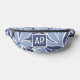 Fresh fanny pack design features a colourful floral pattern in trendy shades of light & dark blue with white accents. A stylish template on the front pocket allows for customisation with one or two initials. Contact me by Zazzle message with questions or custom colour requests.