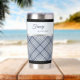 Take your favorite beverage to go with a touch of "quiet luxury" from our Modern Plaid Boutique collection. This stainless steel travel mug features a chic "Milky Blue" and charcoal gray diagonal plaid pattern on the lower half, topped with a clean, solid blue field. The design is accented by a decorative silver-tone line and features the elegant script "Fancy & Focused". Whether you are commuting, heading to a boutique shopping day, or looking for a stylish Mother’s Day gift, this tumbler offers a perfect blend of modern style and everyday durability. This template is ready for your personalization—simply update the text to make it uniquely yours or a special gift for someone focused on their goals.