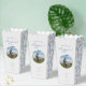 Chic & fresh with youthful charm. This blue and white wedding popcorn favour box features a set of trendy and modern fonts, circle couple photo frame against a off-white background. The rest of the box boasts a playful floral blue jacket. Personalise to make it your won.