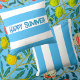 The picture doesn’t show the design but this pillow is adorable. The colors are bright and fresh, the fabric is great for indoor/outdoor use. Beautiful colors and picture of flip flops. Font is great.