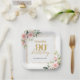 Trendy blush floral eucalyptus gold 90th birthday paper plate
