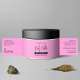 Trendy cosmetic jar wrap around label design (W 8.25" x H 1.75") featuring a feminine blush pink and black design, modern script and sans serif fonts and a minimal layout, This girly pink jar waterproof sticker is great to use on standard 8 oz, 10 oz or 12 oz cosmetic jars but please verify your jar size to ensure a good fit. You can add your business name or logo, your product scent name and even change the colours to match your brand and product aesthetic. Perfect to create labels for body butter, exfoliating sugar scrub, lotions, whipped soap and more!