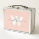 Trendy Blush Pink Script Typography Monogram Metal Lunch Box