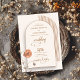 In a world where tradition meets modernity, there is a new trend that has taken the wedding industry by storm. It's the trendy boho arch, adorned with terracotta flowers and pops of vibrant poppy. This invitation is a true masterpiece, combining the elegance of ivory with the earthy allure of brown hues. The intricate design of the arch is complemented by delicate leaves, adding a touch of nature to this enchanting wedding invitation. The boho theme is brought to life with the use of trendy colours and bohemian-inspired patterns. This invitation is perfect for couples who want to infuse their special day with a sense of whimsy and style