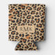 Trendy Bold Leopard Print Custom 3 Letter Monogram Can Cooler
