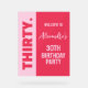 Trendy Bold Pink and Red Girly 30th Birthday Party Sign