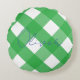 This stylish addition to your kids room features bright green gingham plaid check and stylish handwritten font in blue ready to be customised with any name you wish! Name appears on front and back.