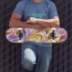 Trendy Bright Gold Purple Waves Abstract Pattern Skateboard