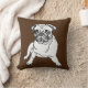 Trendy Brown Pug Dog Drawing Cushion Pillow