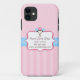 Simple, but sweet, this iPhone case is perfect for any bakery shop owner. Polka dots and stripes in two tones of pink are separated by a light blue ribbon. In the centre, is a large, pink bordered frame with ample space for your information. Three chocolate cake pops, one with pink frosting and two with blue, are together at the top of the frame. Look for the matching business cards, too. If you have any questions, or would like to make a request for different colours, please feel free to contact me and I'll be happy to work with you.