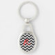 Hip and modern Trendy Chevron Metal Keychain. This cool keychain features a chevron zig zag pattern in black and white. Add text to this design to give it a personal touch.