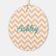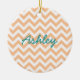 Hip and modern Trendy Chevron Ornament. This cool ornament features a chevron zig zag pattern in coral and white. Add text to this design to give it a personal touch.