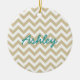 Hip and modern Trendy Chevron Ornament. This cool ornament features a chevron zig zag pattern in beige and white. Add text to this design to give it a personal touch.