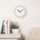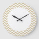 Hip and modern Trendy Chevron Wall Clock. This cool clock features a chevron zig zag pattern in beige and white. Add text to this design to give it a personal touch.