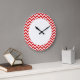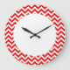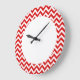 Hip and modern Trendy Chevron Wall Clock. This cool clock features a chevron zig zag pattern in red and white. Add text to this design to give it a personal touch.