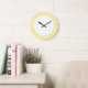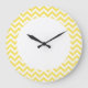 Hip and modern Trendy Chevron Wall Clock. This cool clock features a chevron zig zag pattern in yellow and white. Add text to this design to give it a personal touch.