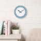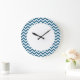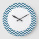 Hip and modern Trendy Chevron Wall Clock. This cool clock features a chevron zig zag pattern in blue and white. Add text to this design to give it a personal touch.
