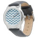 Hip and modern Trendy Chevron Watch. This cool watch features a chevron zig zag pattern in blue and white. Add text to this design to give it a personal touch.