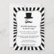 Look sharp, prim and proper with a touch of whimsical and fun with this trendy and chic black baby boy shower invitation. It features a simple design of elements of a gentleman which includes a top hat, a monocle one piece reading glass and a curly moustache. Black and white is contrasting, unique and outstanding for a baby shower invitation. Personalise easily with your party details.