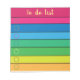 Keep track of all your important tasks with this stylish notepad. The design features horizontal stripes in the shades of the rainbow with the lettering "To do list" written in a stylish editable script and seven check circles. The text and the check circles are fully customisable.