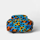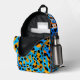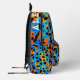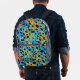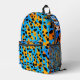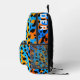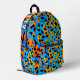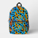 This cool, youthful backpack features a colourful trendy design with orange, black, turquoise gradient leopard spots pattern allover, and a customisable name on the top.