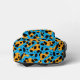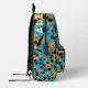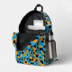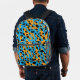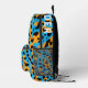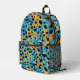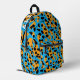 This cool, youthful backpack features a colourful, trendy design with orange, black, turquoise leopard spots pattern allover, and a customisable name on the top.