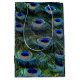 Trendy Colourful Peacock Feathers Teal Medium Gift Bag