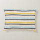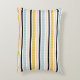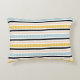 Modern accent pillow with blue, black, peach, white and golden yellow stripes.
