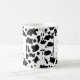 Make a fun, trendy statement with this personalized mug featuring a bold black and white cow hide pattern. This popular farmhouse style design includes a sophisticated frame for your details. Easily customize it with your name and initial to create the perfect everyday coffee cup. It makes a unique personalized gift for birthdays, teens, students, or anyone who loves graphic, modern, or rustic decor.