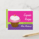 Funky patterns of pink chevrons, purple polka dots and a lime green bar make a fun background for this cupcake recipe card. A convenient postcard size, it features a chocolate cupcake with pink and white icing with sprinkles and a cherry on top. Perfect for recipe exchanges. All text is customisable and the recipe lines can be deleted by clicking the "Customise It" button and removing them individually from the edit menu. Available with matching products.