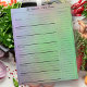 This meal planner can be personalised for with your title text. The design is featured on a rainbow coloured background with a shopping list that can be cut away for your grocery shopping convenience.