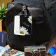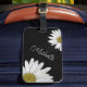 Trendy floral luggage tag, with a white daisies design on a black background. With cute script typography white lettering, you can personalise with your own text. A great way to add a whimsical touch to your suitcase or bag!