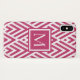 A trendy arrow diamond deco pattern iPhone X Case in peacock pink. Personalise by adding your monogram.