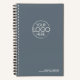 Classically styled notebook prominently featuring a business or personal logo over rich modern coloured covers. Personalizable logo and name (or text lines). Trendy cool understated elegance. Stylish modern serif typography. Notebook with college ruled lines or options of sketch, grid, etc.Hard cover available. Contact for assistance in personalising or customising to your individual wishes.